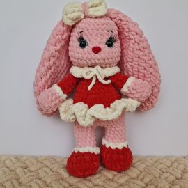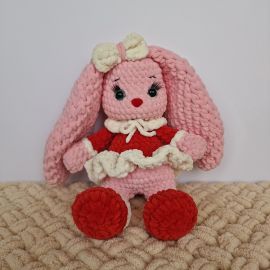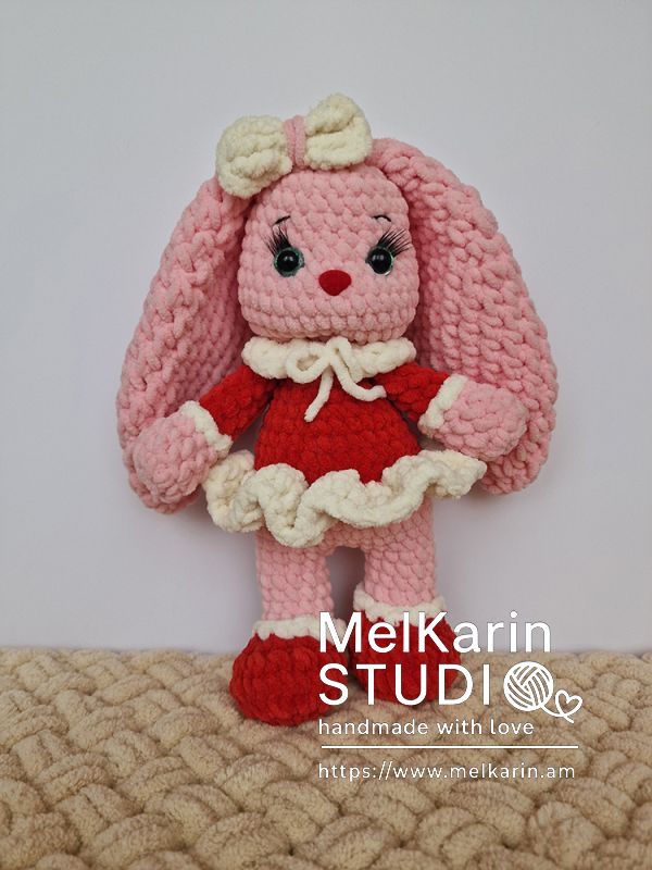 Կարմիր զգեստով ձեռագործ վարդագույն նապաստակը հմայիչ ձեռքի աշխատանք է, որը հարմարավետություն և ջերմություն կբերի ձեր տուն: Այս փափուկ խաղալիքի յուրաքանչյուր կարը պատրաստված է սիրով և ուշադրությամբ մանրուքների նկատմամբ: Նուրբ կարմիր զգեստով նապաստակը հիանալի նվեր կլինի