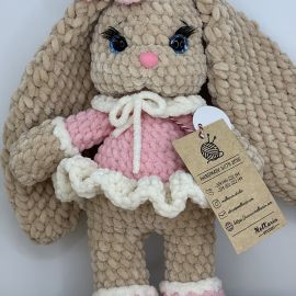 Зайка в розовом платье — это очаровательная ручная работа, которая подарит уют и тепло в ваш дом. Каждый стежок этой мягкой игрушки сделан с любовью и вниманием к деталям. Зайка в нежном розовом платье станет прекрасным подарком для детей или милым украшением