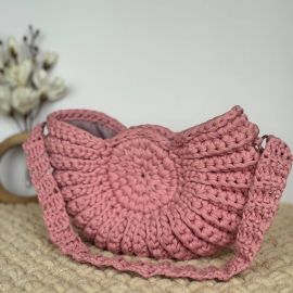 Эта стильная розовая вязаная сумка выполнена вручную из прочной трикотажной пряжи. Уникальный дизайн с «крыльями» придаёт ей изысканность и оригинальность. Сумка идеально подойдёт как для повседневного использования, так и для особых случаев. Удобный ремешок