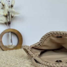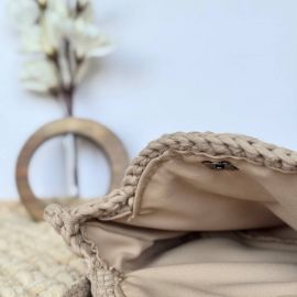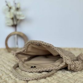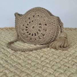 ԱվելացնելԱյս կլոր ձեռագործ պայուսակը համադրում է բնական ոճն ու նրբագեղ պարզությունը։ Հյուսված է 100% բամբակյա թելից՝ բեժ երանգով, որը կատարյալ է ինչպես առօրյա, այնպես էլ ամառային տեսքի համար։ Թելից պատրաստված բազկաթելը և դեկորատիվ թելային փունջը՝ տալիս են յուրահատուկ հմայք։