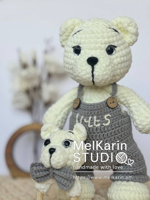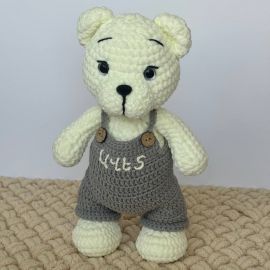 ԱվելացնելՍա փափուկ և սիրալիր արջուկ է, որը կուրախացնի և՛ երեխային, և՛ մեծահասակին։ Պատրաստված է բարձրորակ պլյուշե և բամբակյա թելերով։ Ձեռքով կարված և հարմարավետ գրկելու համար։ Փայտե կոճակներով մոխրագույն շալվարը խաղալիքին տալիս է հմայիչ ու դասական տեսք։ Հիանալի նվեր է տարեդարձի, ծննդյան, կամ պարզապես սիրով պատրաստված ուշադրության նշանի համար: