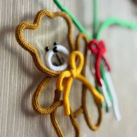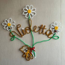 Այս գեղեցիկ պատային զարդը՝ Violetta անունով, ստեղծված է «տրիկոտին» տեխնիկայով՝ հատուկ փափուկ բամբակյա թելով պատված մետաղալարով։ Յուրաքանչյուր տարր՝ տառից մինչև ծաղիկ և արջուկ, հյուսված է ձեռքով, սիրով և ուշադրությամբ։ Կազմությունը համալրվում է երեք երազանքային