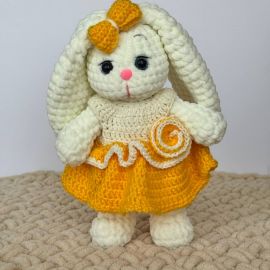 ԱվելացնելԱյս հմայիչ ձեռագործ նապաստակը կատարյալ նվեր է փոքրիկների համար և կարող է գեղեցկացնել տան ինտերիերը։ Նապաստակը հյուսված է կաթնագույն փափուկ թելից, իսկ վառ դեղին, կամ բորդո զգեստները ու քաղցր ժպիտը նրան դարձնում են անզուգական կերպար։ Բնական և հիպոալերգիկ նյութերը ապահովում են անվտանգ խաղ՝ նույնիսկ նորածինների համար։