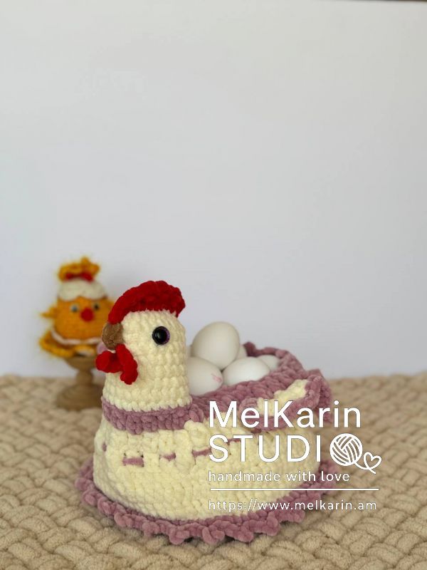 Очаровательная вязаная курочка ручной работы — оригинальный элемент пасхального декора и практичная корзинка для яиц.