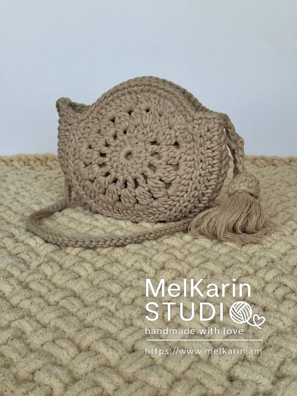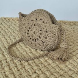 Эта круглая вязаная сумочка ручной работы — воплощение натурального стиля и утончённой простоты. Изготовлена из прочной хлопковой пряжи в бежевом оттенке, она гармонично впишется как в повседневный, так и в пляжный образ. Удобный плетёный ремешок и декоративная