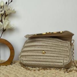 Элегантный вязаный клатч «Шампань» создан для тех, кто ценит стиль и ручную работу. Плотная вязка, благородный бежево-шампанский оттенок и золотистая фурнитура делают эту сумочку идеальной для особых случаев, вечерних выходов и торжеств. Удобный формат и прочная