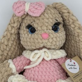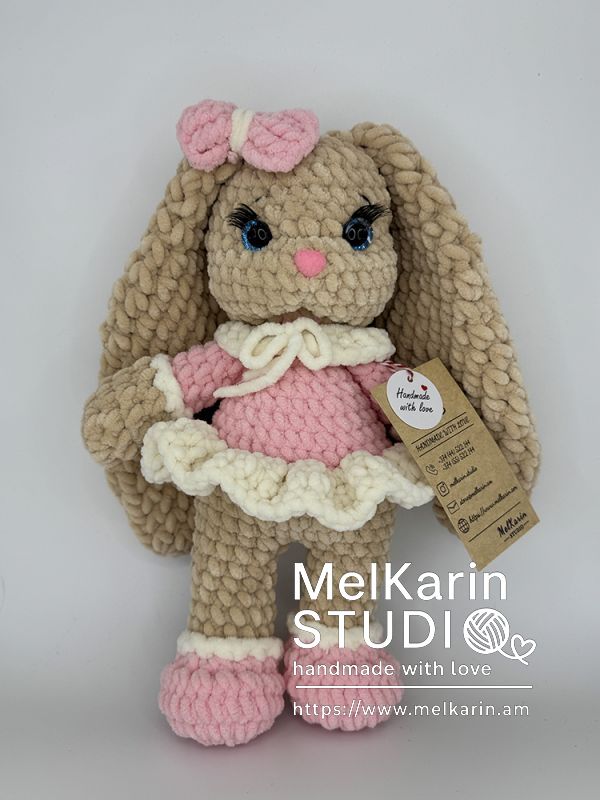 Зайка в розовом платье — это очаровательная ручная работа, которая подарит уют и тепло в ваш дом. Каждый стежок этой мягкой игрушки сделан с любовью и вниманием к деталям. Зайка в нежном розовом платье станет прекрасным подарком для детей или милым украшением
