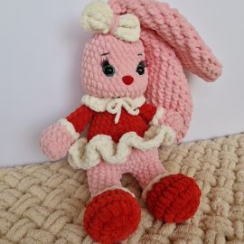 Розовая зайка в красном платье — это очаровательная ручная работа, которая подарит уют и тепло в ваш дом. Каждый стежок этой мягкой игрушки сделан с любовью и вниманием к деталям. Зайка в нежном красном платье станет прекрасным подарком для детей или милым украшением